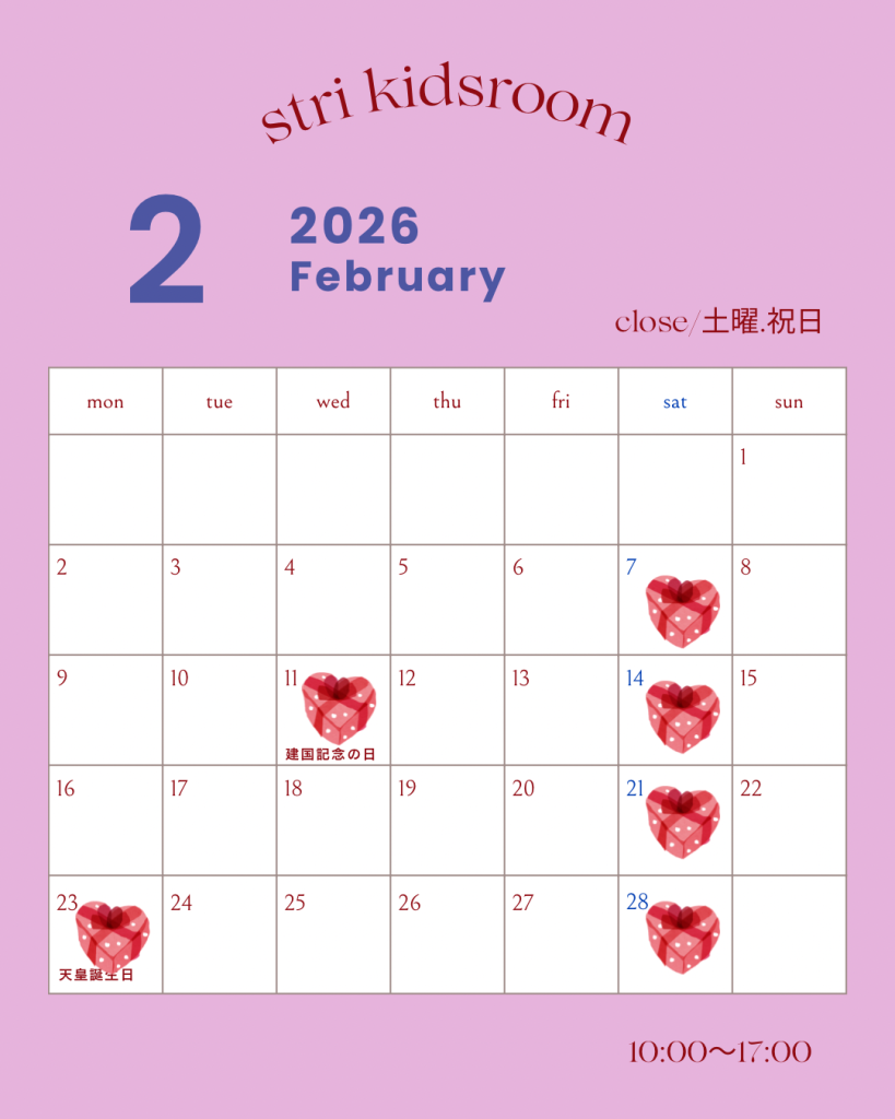 kids room 2026.01.112月の定休日について💌 kids room 2026.01.06カフェ預かりについて変更があります🍽️ NEWS 2026.01.012026年 新年のご挨拶 kids room 2025.12.30thanks2025 LESSON 2025.12.29January INFO 2025.12.28【スタジオ】年末年始の営業について kids room 2026.01.112月の定休日について💌 kids room 2026.01.06カフェ預かりについて変更があります🍽️
